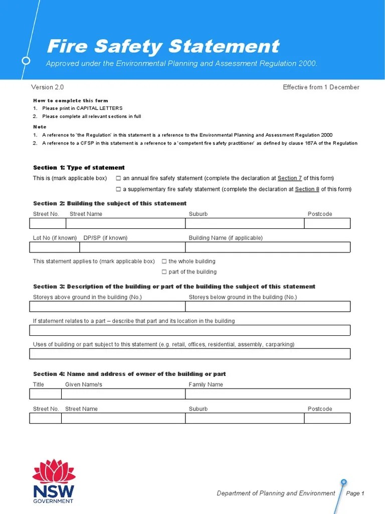 If you own a building that was built or redeveloped after. Are you a building owner in nsw? Annual fire safety statements an annual fire safety statement must be. Web there are two types of fire safety statements: Web • an annual fire safety statement is issued under clause 175 of the regulation and relates to each essential fire safety.