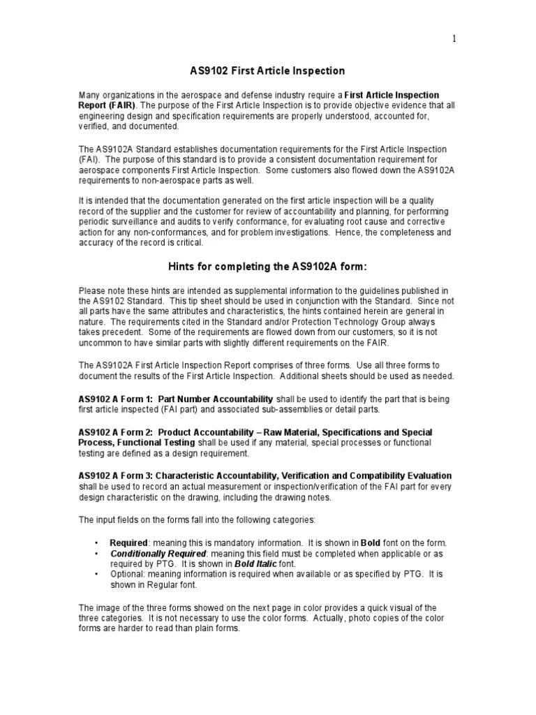 As9102 Form 1 - Web learn how to fill out the three forms of the as9102 first article inspection report with excel and download a free template. Web this document provides directions on how to identify, plan for, and satisfy as9102 requirements for completing a compliant. Blue text denotes required field by as9102 or ngas. Green text denotes a conditionally required field red. Web learn about the new revision of as9102 first article inspection report and how it affects form 1.