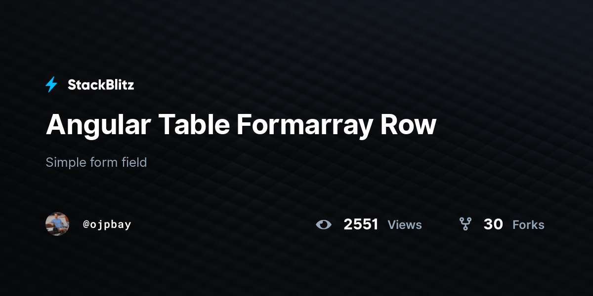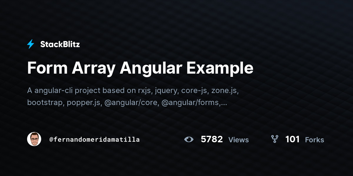 Form Array In Angular Stackblitz - As your arraybox template states formarray has an array of formgroup. 0 view s 0 fork s. As @end.game noticed the array.
