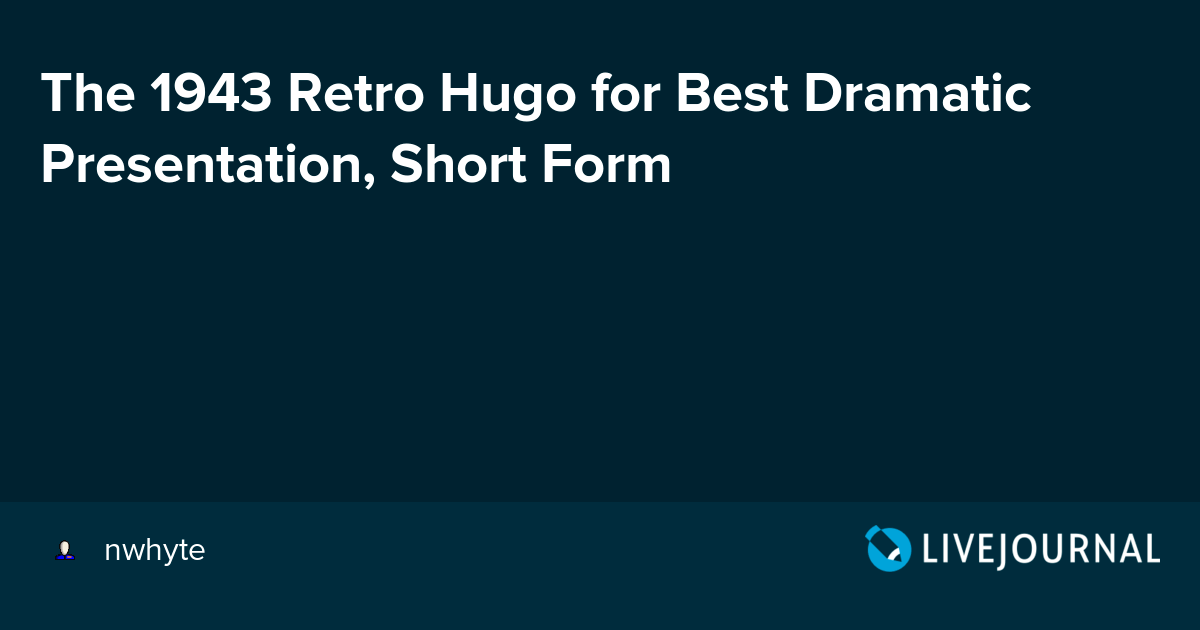 Hugo Award For Best Dramatic Presentation Short Form - Can i buy a replica of the hugo award trophy? Is there a monetary award? 2020 hugo award finalists announcement video. Web the hugo award for best dramatic presentation, short form has been awarded annually since 2003. Web 2021 hugo awards | the hugo award. A memory called empire, by arkady. Discon iii, washington, dc, usa on december 18, 2021. Web 2020 hugo award ceremony video. Is young adult fiction eligible?