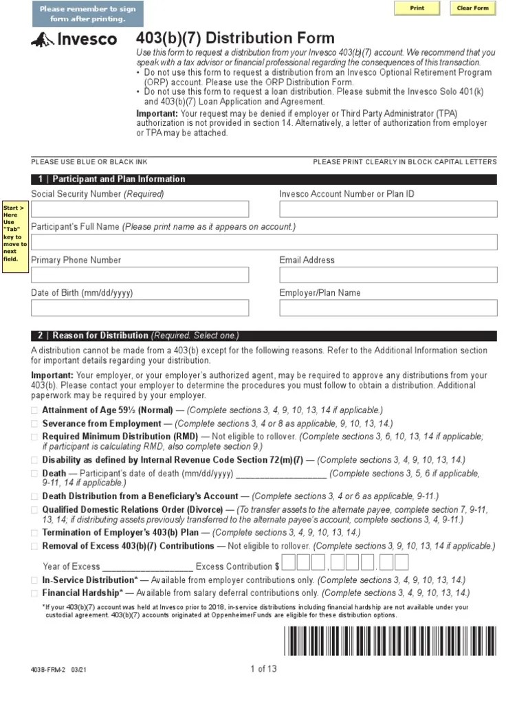 Invesco 403B Distribution Form - Request a required minimum distribution from an invesco ira. Use this form to request a distribution from your invesco 403 (b) account for various reasons, such as severance, disability,. Please submit the ira required minimum distribution form. Please read the rollover explanationfor. Please submit the invesco solo 401(k) and 403(b)(7) loan application and agreement. Request a transfer due to death or a distribution. Use this form to request a transfer or distribution from a. Use this form to designate or modify the beneficiary (ies) on your invesco ira (including traditional, roth, sep, sarsep and simple),.