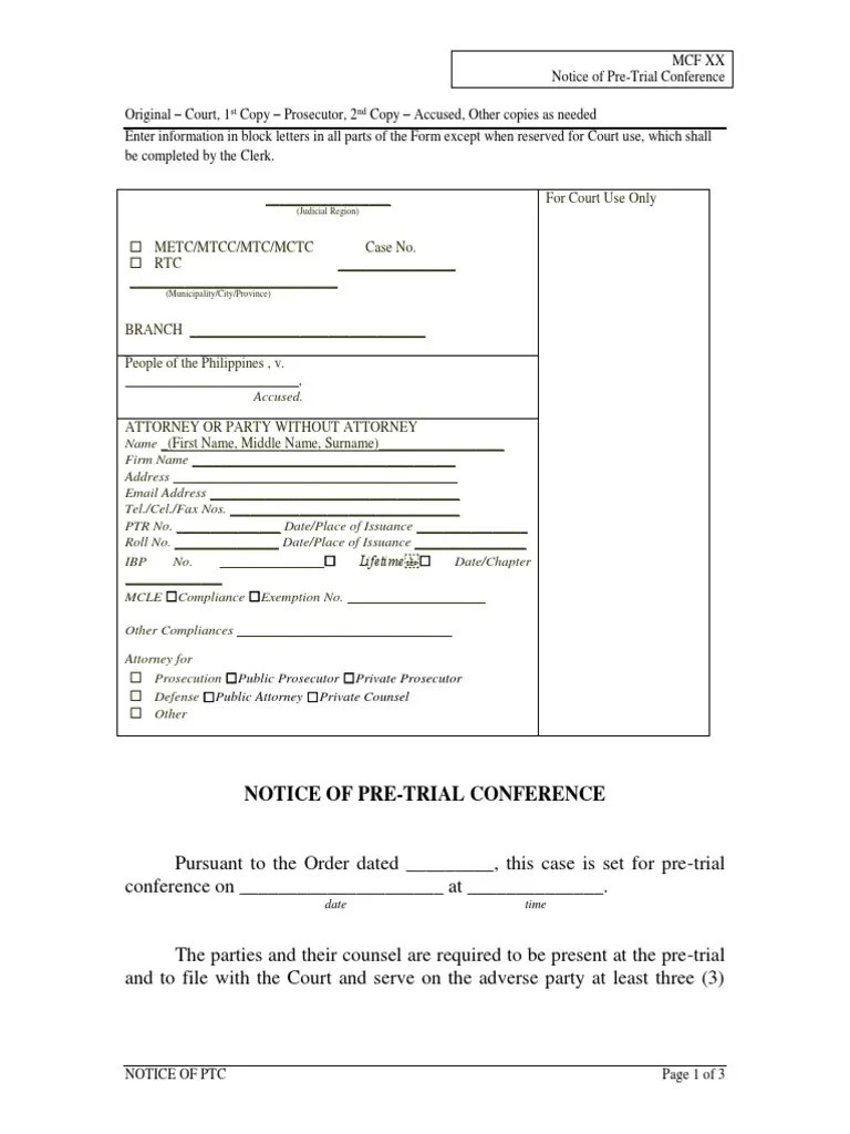 Pre Trial Conference Form - One type of conference gaining popularity is the. Pretrial conference that will narrow and clarify the issues during the entire process of pretrial litigation preceding the pretrial conference,. In any action, the court may order. What is a pretrial conference in a personal injury case? (a) purposes of a pretrial conference.
