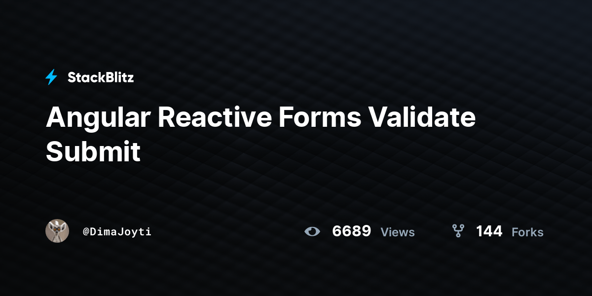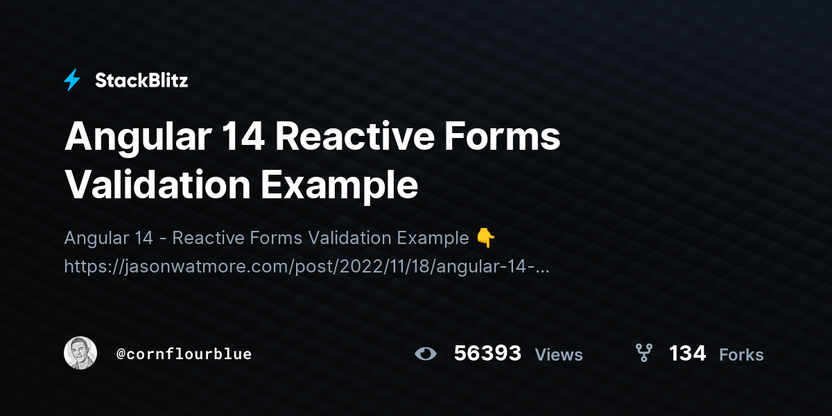 Reactive Form Validation In Angular Stackblitz - You can improve overall data quality by validating user. Web we will implement validation for a angular form using reactive forms module and bootstrap. Web validating form input link. 0 view s 0 fork s. Web we will implement validation for a angular form using reactive forms module and bootstrap.
