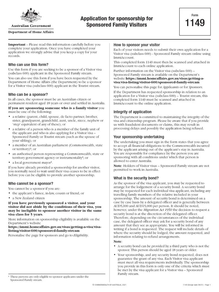 Sponsorship Form 1149 - Web result check your eligibility and apply for a sponsored family visitor visa (subclass 600) with the help of our. Web result family visas refer to partner, sponsored parent (temporary), parent, child and other family visas. Web result learn how to apply for a visitor visa if you are sponsored by a family member or a sponsor organisation.