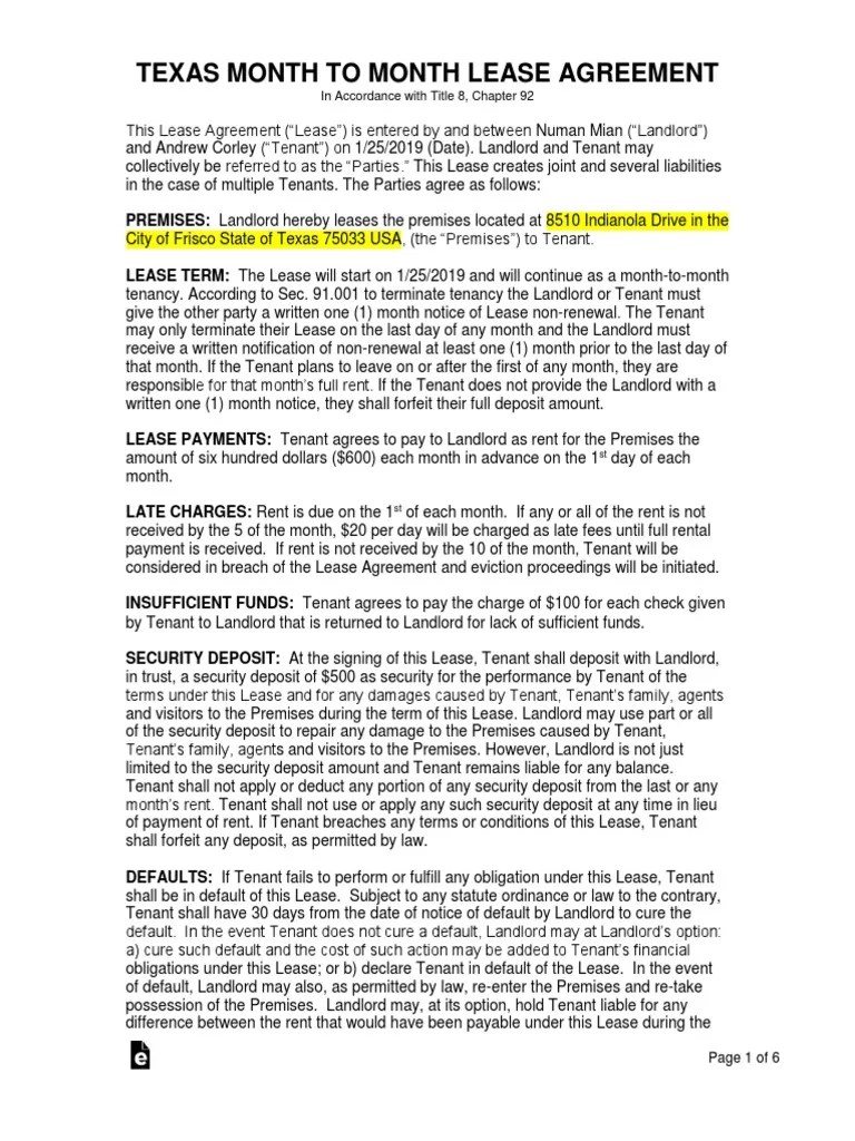 Texas Month To Month Lease Form - Web tenant will pay landlord a monthly rent of $__________ for the term. Rent will be payable in advance and due on the. The tenant shall be allowed to occupy the premises on a.