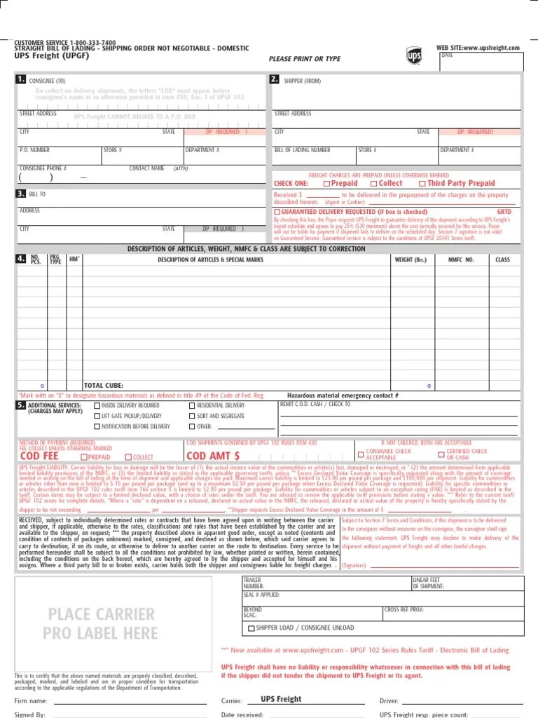Ups Bol Form - Web learn what a bill of lading (bol) is and how it differs from an air waybill or a sea waybill. Web view and print bol. Clicking 'log in' or 'sign up' will send you to ups.com login page. After login you'll be returned to. A bol is a document of title, a receipt and a. Web uniform bill of lading terms and conditions. Web what information is on the bol form? Shipper and receiver (or consignee) names and complete address. (a) the carrier or the party in possession of any of the property.